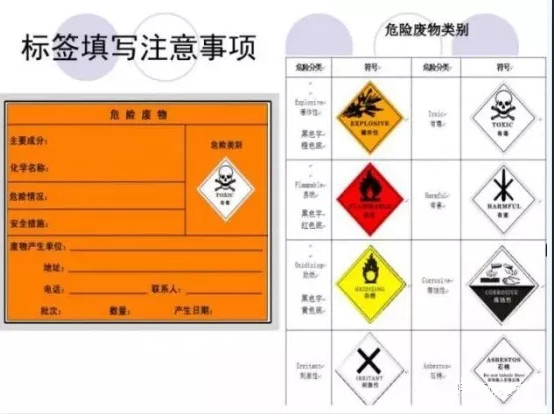 4.不同種類危險廢物應(yīng)有明顯的過道劃分,墻上張貼危廢名稱,液態(tài)危廢需將成裝容器放至防泄漏托盤內(nèi)并在容器粘貼危險廢物標(biāo)簽,固態(tài)危廢包裝需完好無破損并系掛危險廢物標(biāo)簽,并安要求填寫。